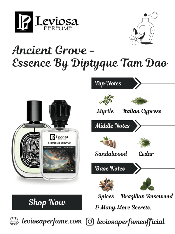 Ancient Grove is a profoundly woody and meditative fragrance designed to transport the wearer to serene, sacred forests, inspired by the pure, legendary sandalwood focus of Diptyque Tam Dao.
