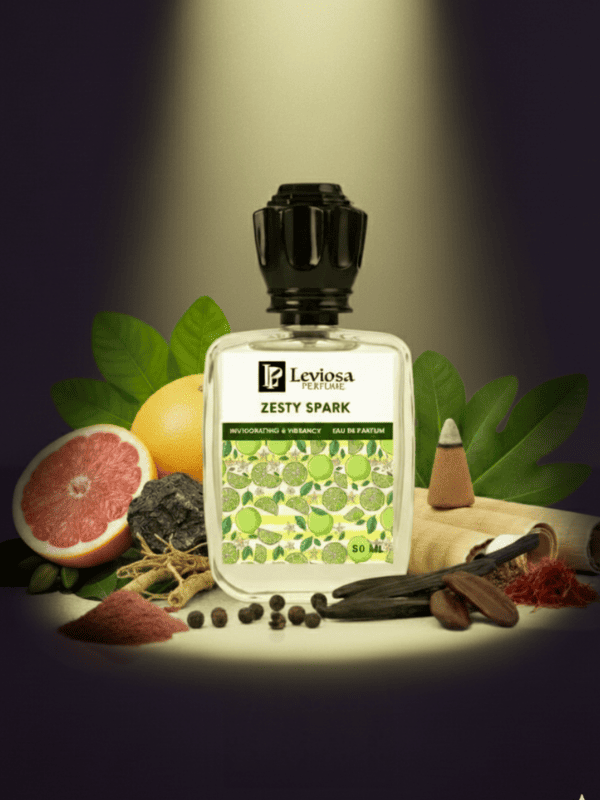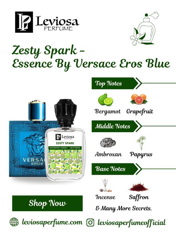 Zesty Spark is a bold and energetic aquatic-aromatic fragrance that radiates a powerful, confident aura, capturing the refreshing yet seductive duality of the Versa*e Er*s Blue profile.